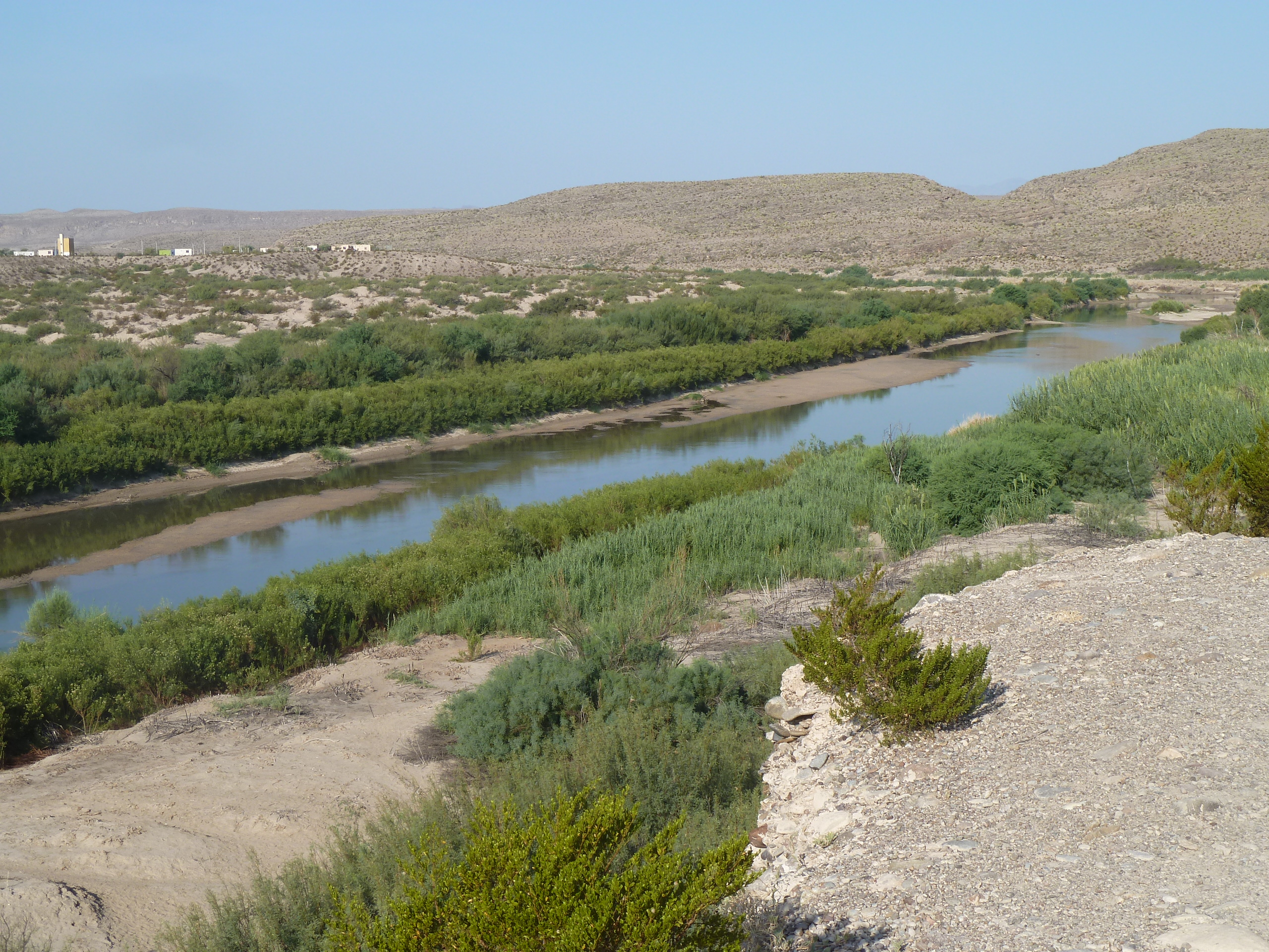 Au loin village mexicain de Boquillas del Carmen sur l’autre rive du Rio Grande qui est la frontière naturelle avec les USA.